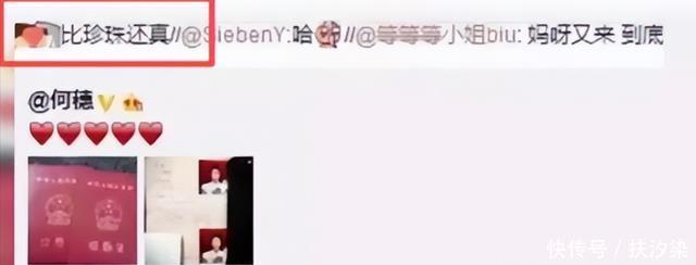 原来何穗早在多年前就有过一次婚姻记录,当时她在微博上晒过结婚证,有人问她是不是真的,她回答“比珍珠还真”。