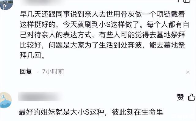 这是大S今月猝然离世后,小S停工八个月后的首次公开亮相。 当晚她穿一身黑裙,没做华丽装饰,唯独这条项链贴身戴着。 有人觉得“亲情深厚可以理解”,但更多人觉得毛骨悚然:“想念亲人的方式那么多,非要戴骨灰吗?”