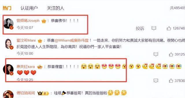 出道这么多年, 陈伟霆除了和杨颖、阿Sa的两段旧情, 几乎零绯闻,这次突然官宣当爸,粉丝非但没骂“塌房”,反而集体送上祝福。 曾舜晞优先表示:恭喜佛爷!其老一辈随后也纷纷送上祝福。