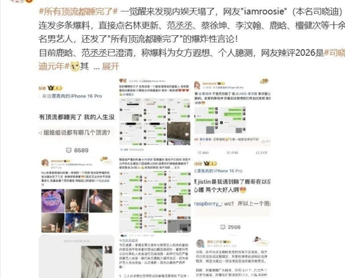 事件的导火索来自一位名叫司晓迪的网络红人,在社交平台公开爆料自己与鹿晗存在私人关系,并附上了疑似与其他一线男星的聊天截图。